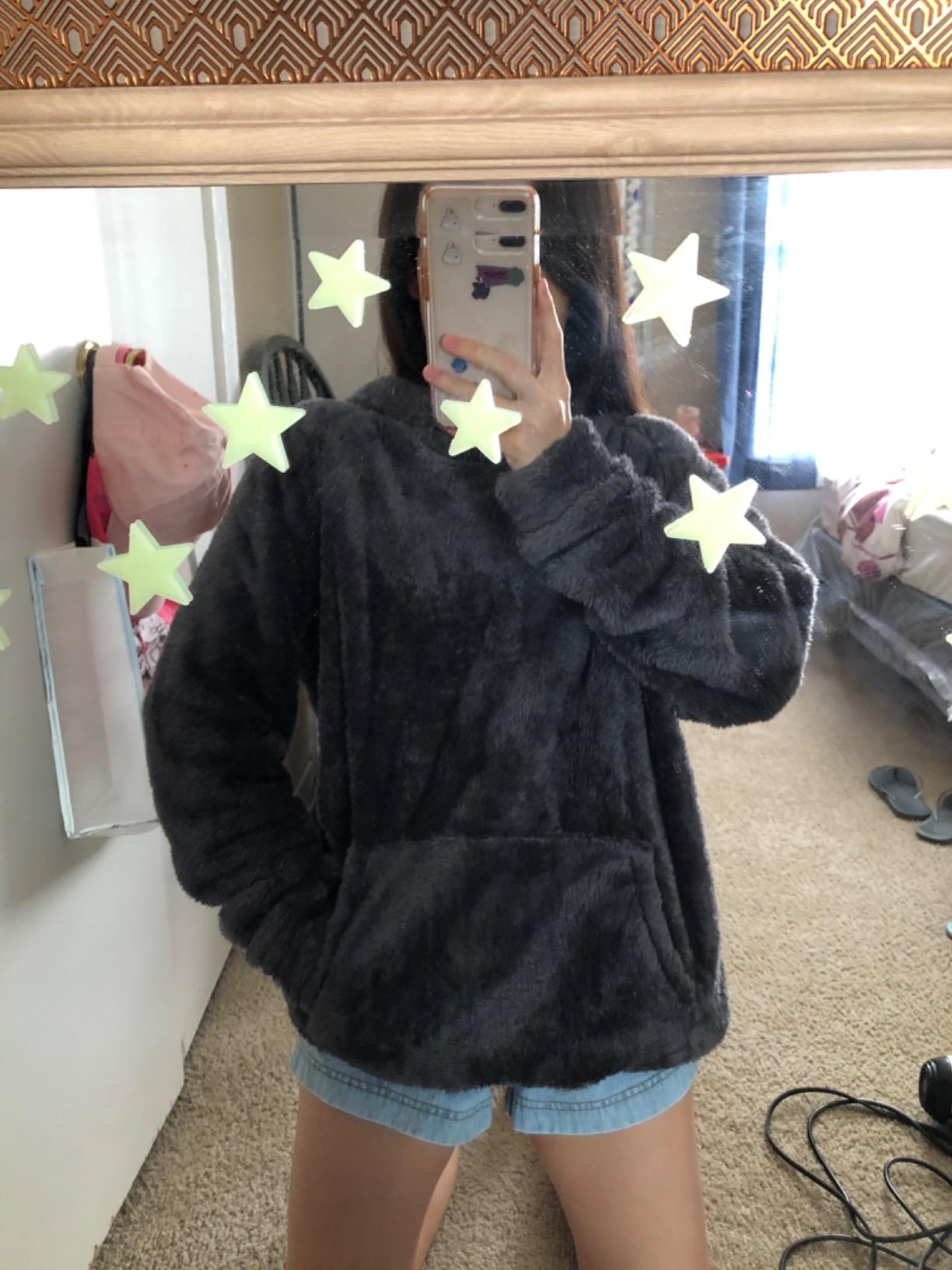 This hoodie is perfect to wear when the weather gets colder. It is soo fluffy and comfy. There is fur both inside and out. I would recommend you to size up if you want it to be a baggier and comfier fit. This hoodie is perfect to wear when the weather gets colder. It is soo fluffy and comfy. There is fur... This hoodie is perfect to wear when the weather gets colder. It is soo fluffy and comfy. There is fur both inside and out. I would recommend you to size up if you want it to be a baggier and comfier fit.